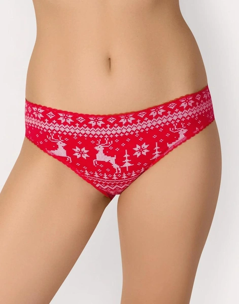 При стилизации таких моделей, конечно, стоит быть особенно осторожными. Надевать его стоит под плотные фактуры, чтобы яркий цвет не просвечивался через ткань и не делал образ неуместным и безвкусным. Подбирайте красочное белье в тон к цвету образа или носите со свитерами, свитшотами и джинсами, если планируете провести новогоднюю ночь активно.