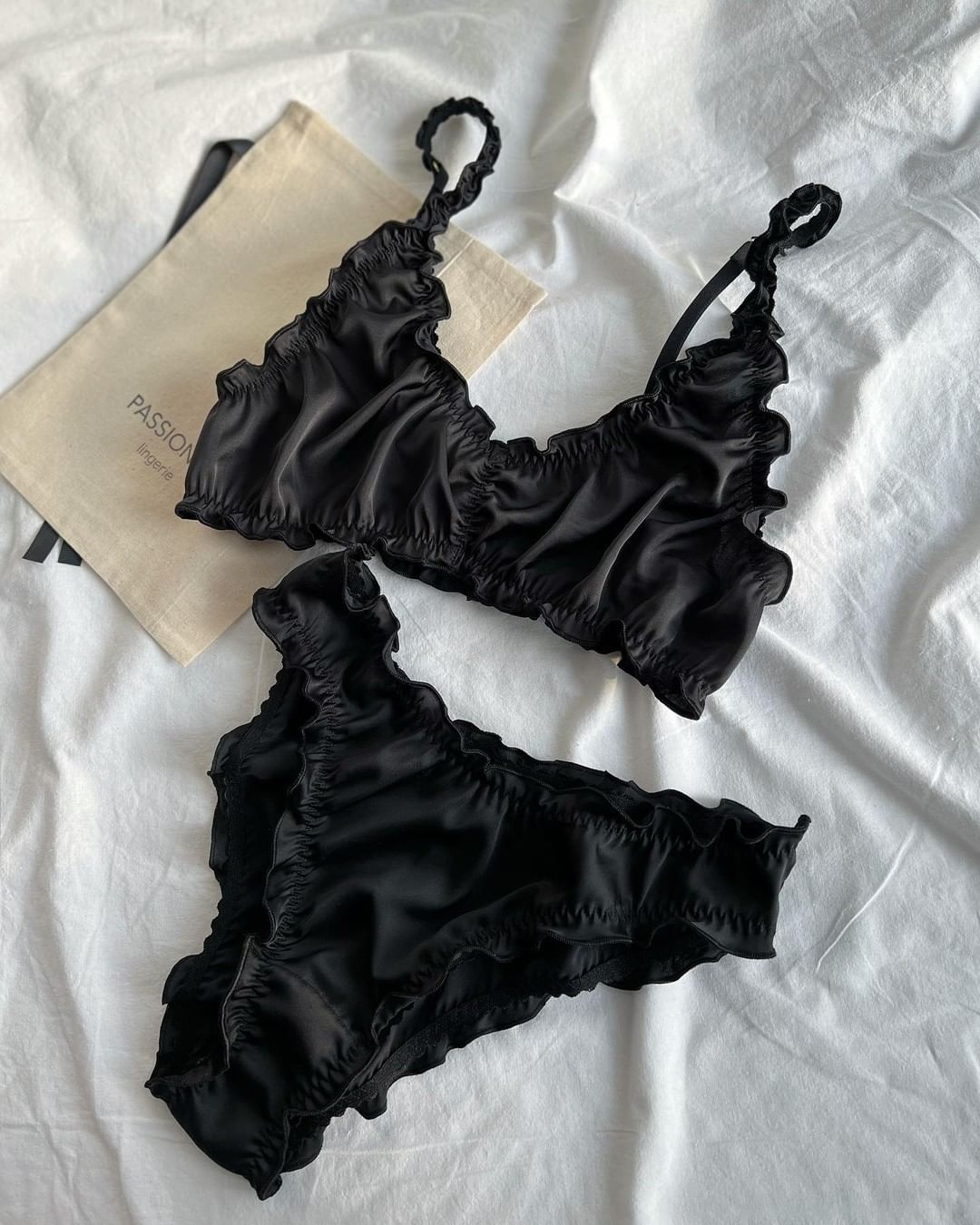 Атласное и шелковое белье подойдет романтичным и женственным натурам. Даже базовые монохромные комплекты классических тонов смотрятся необычно и стильно за счет оборок и складок. Лаконичные сеты нижнего белья можно выбрать в пастельных и натуральных оттенках, а также остановить выбор на ярких моделях, которые будут поднимать настроение всю хмурую осень.