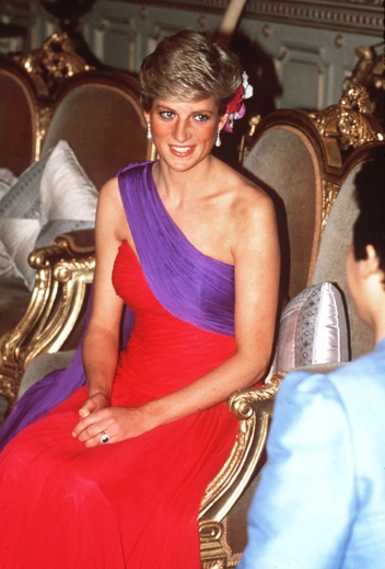 Историки моды знают: алый в ансамбле с фиолетовым – фирменное цветовое сочетание для стиля принцессы Уэльской. Дуэт этих двух оттенков Диана сделала каноническим, появившись в ало-фиолетовой палитре сначала на ужине в Бангкоке в феврале 1988 года, а потом – на премьере фильма «Жгучая тайна» в 1989-м, во время визита в Гонконг в том же году и в Тадж-Махал спустя три года. Оба наряда принцессы Уэльской фанатам определенно знакомы, а модные журналисты не устают на протяжении 20 лет называть эти образы в технике color-blocking одними из лучших в гардеробе королевской особы. И не удивительно, что герцогиня Меган решила взять настолько удачный цветовой дуэт на заметку, к тому же, поддержав палитру организации, которой она покровительствует.