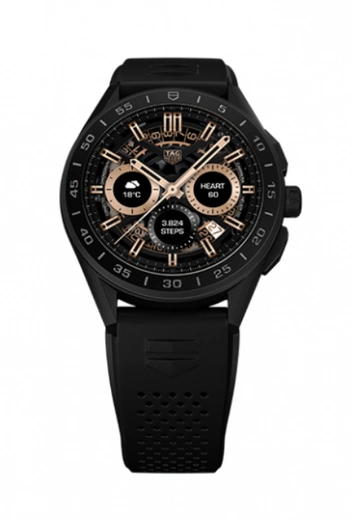 Для любителей высокотехнологичных моделей TAG Heuer представили новую смарт-линейку Connected. Кнопки и заводная головка умных часов выполнены в спортивном стиле. За высокотехнологичность отвечают встроенные GPS, компас, акселерометр, гироскоп и пульсометр. К тому же, часам ничего не страшно: граненые крепления и 100% активный дисплей с устойчивым к царапинам сапфировым стеклом выдержит многое.