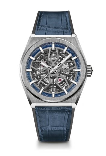 Для тех, кто предпочитает универсальную палитру для любого времени года, стоит присмотреться к моделям из серии Zenith Defy Classic. Часы, выполненные в насыщенной-синей гамме, выглядят крайне универсальны и подойдут и мужчинам и женщинам. Скелетонированный механизм Elite, корпус диаметром 41 мм из титана с крацеванием и ремешок из кожи аллигатора – список характеристик для самых вневременных часов.