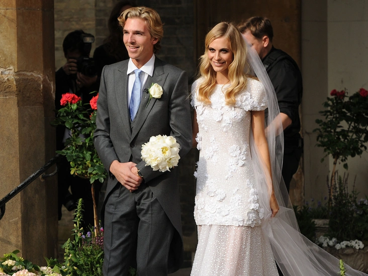 Показательный пример авангардного подхода продемонстрировала Пош Спайс, узаконившая отношения с Дэвидом Бекхэмом в 1999 году. Пара сыграла свадьбу в ирландском замке, и на официальной части Виктория появилась в корсетном платье из сатина, способного потягаться с подвенечным туалетом Кэрри Бредшоу, и короне. Асимметричное пурпурное платье с разрезом до бедра и декорированной розами лямкой на одно плечо, которое невеста выбрала для вечера, — лучшее олицетворение экстравагантного гламура девяностых. Костюм Дэвида был выдержан в тех же тонах и тоже украшен розой. Их четырехмесячный сын Бруклин, который был назначен хранителем колец, тоже предстал в фиолетовом ансамбле.