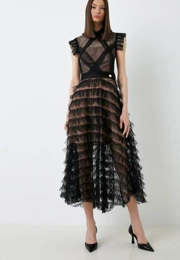 Образ семейки Аддамс — неисчерпаемый источник вдохновения на Хэллоуин. Драматичное черное платье в пол — образ Мортиши Аддамс, который так легко повторить. К наряду останется добавить парик с черными длинными волосами, выбелить кожу пудрой и сделать макияж с темной помадой. Повторяя образ Мортиши, выбирайте такое платье, в котором смело сможете ходить и в весенне-летнем сезоне, ведь длина макси будет в тренде (читайте также: 20 главных трендов весны и лета 2023: самый полный гид).