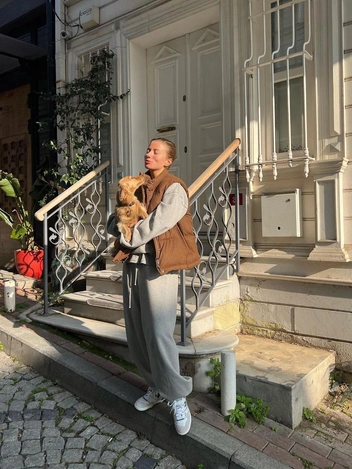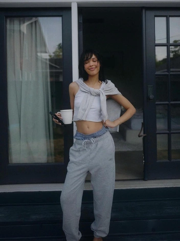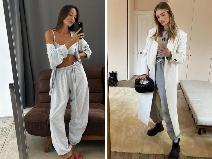 Не скажем, что это тренд разлетелся по всему миру. Звезды время от времени надевают серые джоггеры в сочетании с туфлями или кроссовкам, как, например, это делают Кэти Холмс или Роузи Хантингтон-Уайтли. А вот среди русских модниц тенденцию точно можно назвать повсеместной — самые стильные девушки уже пополнили свой гардероб широкими серыми брюками с завязками снизу.