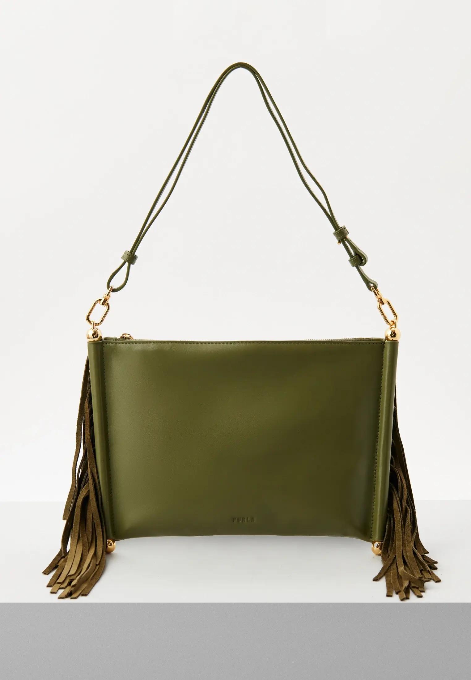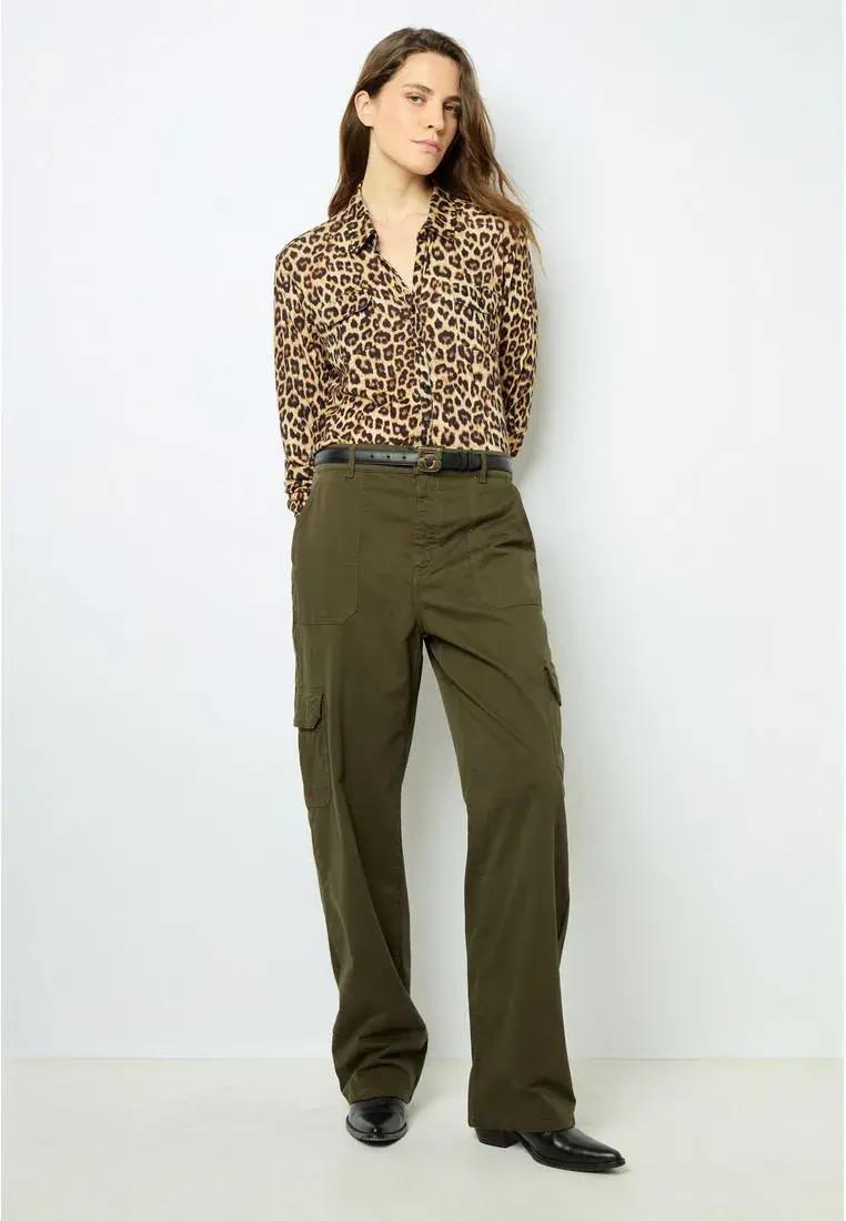 Оливковый идеально сочетается практически с любой палитрой: с белым и серым он выглядит сдержанно и интеллигентно, с терракотовым или оранжевым — неожиданно живо, с фиолетовым — артистично и богемно. Он — идеальная база для экспериментов с фактурами: деним, лен, кожа, шелк и даже ультра-трендовая бахрома. Особенно выигрышно смотрятся сочетания, где уравновешенность оливкового встречается с блеском — например, кожаная юбка или штаны-карго.