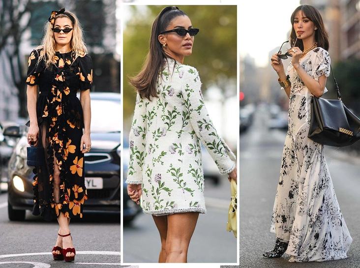 Продолжая говорить о женственности, дизайнеры не могли пройти мимо лаконичных цветочных платьев приталенного кроя. Они могут быть без пояса, ремня и специальных завязок. Если в новом сезоне вы хотите попробовать что-то новое и снять с себя оверсайз одежду, тогда примерьте этот образ и посмотрите на себя по-новому. Дополните платье с цветочным узором балетками с квадратным или острым мысом, слингбэками, лодочками или же сапогами-трубами и казаками.