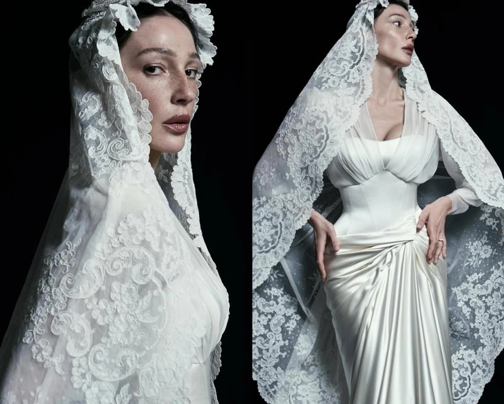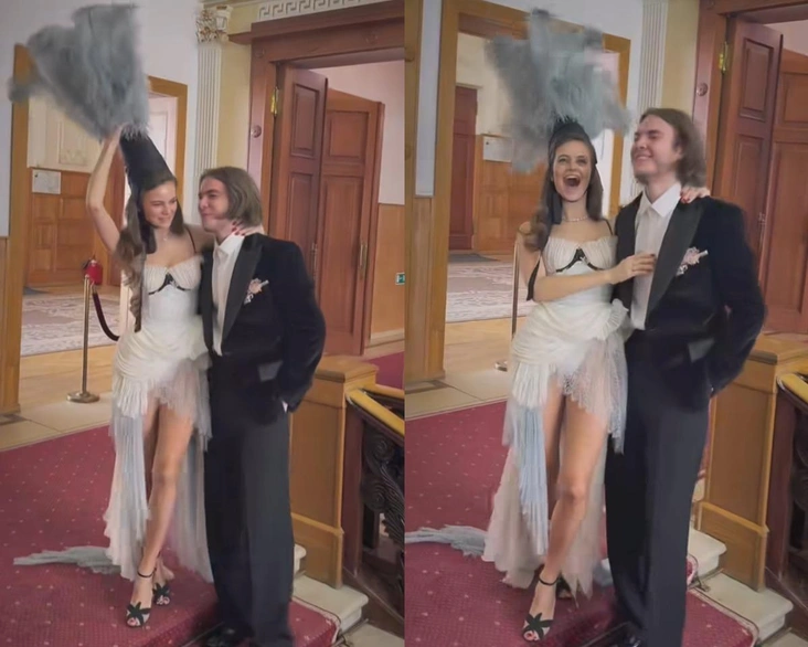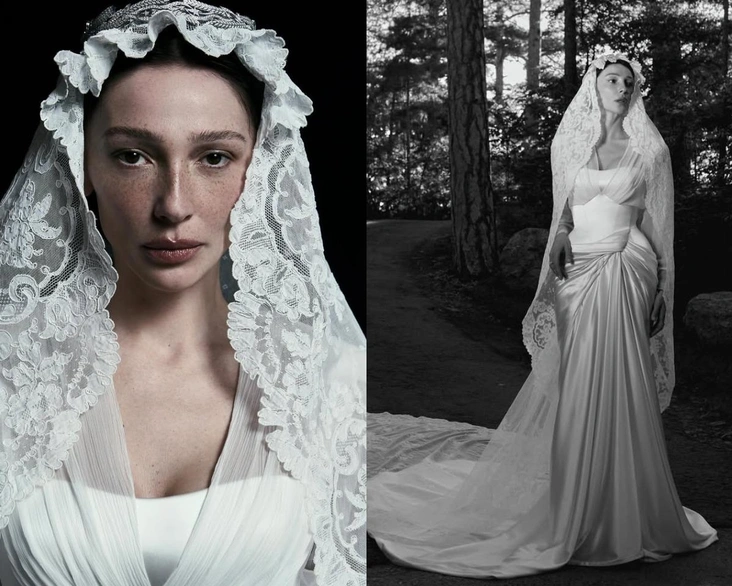 Одним из самых обсуждаемых и без сомнения самых красивых стал подвенечный образ Насти Ивлеевой. Для своей тайной свадьбы она выбрала кастомное платье от Ulyana Sergeenko — корсетное, в стиле старого Голливуда и с невероятной фатой. Образ сочетал в себе строгость и дерзость, как и сама Настя. По словам инсайдеров, подготовка длилась более двух месяцев, а финальная примерка прошла в атмосфере полной секретности. Стилистом звезды стала Ксюша Смо.