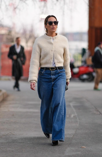 Джинсы с широкими штанинами, также известные как джинсы-бэгги или гаучо, станут одним из самых популярных силуэтов сезона весна-лето 2024. Джинсы свободного кроя, отличающиеся свободной, плавной посадкой, высокой талией и расклешенностью от бедра, создают удобный и непринужденный стильный образ. Сочетайте их с заправленными рубашками, шелковыми блузками либо укороченными топами или свитерами, чтобы создать небрежный, но при этом изысканный ансамбль (читайте также: Как отличить модные буткат, слоучи и бэгги: полный джинсовый словарь для новичков).