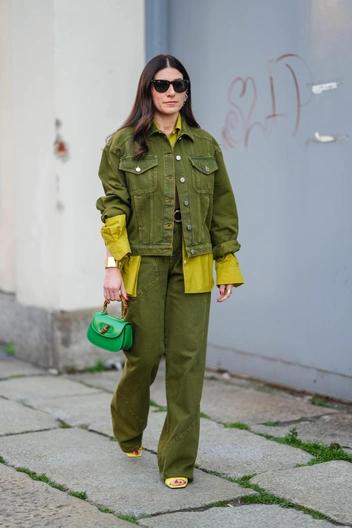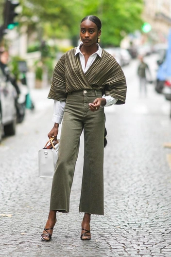Джинсы цвета хаки — универсальный и практичный выбор для весны и лета. Этот нейтральный оттенок хорошо сочетается с различными оттенками и узорами в одежде, что позволяет легко создавать самые разные аутфиты. Сочетайте их с белоснежной рубашкой и лоферами, чтобы создать изысканный образ, или с футболкой с рисунком и кроссовками, чтобы создать повседневный ансамбль (читайте также: Как отличить модные буткат, слоучи и бэгги: полный джинсовый словарь для новичков).