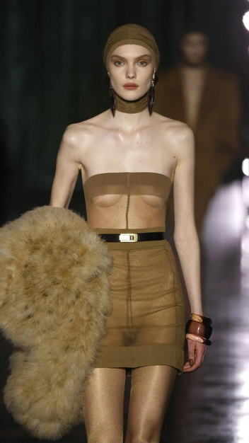 Интересный и элегантный способ борьбы с холодом — маленькие шапочки, по типу как для для плавания, такие появились в коллекции Jil Sander. А Энтони Ваккарелло из Saint Laurent обмотал капрон вокруг головы моделей, отсылая нас к шикарному стилю Лулу де ла Фалез. Этот вариант подойдет тем, кто не любит шляпки и платки — он больше всего похож на классическую шапку, но выглядит актуально из-за своего кроя и исполнения. Такой аксессуар должен быть сшит из тонкого трикотажа, плотно прилегающего к голове. Сочетайте «плавательную шапочку» с акцентными массивными серьгами.