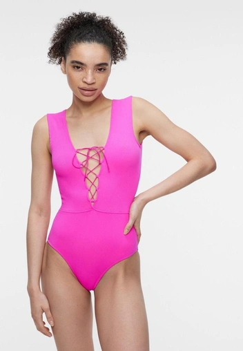 Создать по-настоящему модный и неповторимый образ помогают декоративные элементы. Летом 2023 года актуальны металлические детали, например, крупные кольца, а также длинные завязки, купальники с которыми по-прежнему остаются одними из самых востребованных. Однако последний тренд эволюционировал: к тонкой шнуровке добавились широкие ленты-завязки, с которыми можно и нужно экспериментировать.