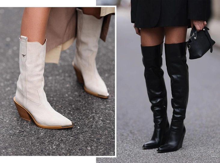 Самые модные инфлюенсеры этой осенью одеваются в стиле девушки ковбоя: она носит джинсовые комбинезоны, вельветовые брюки, эффектные шляпы, кожаные куртки с бахромой, широкие ремни с заклепками и завершает каждый выход казаками или ковбойскими сапогами. Первые — короткие ботильоны на невысоком скошенном каблуке, а вторые — это уже высокие сапоги с широким голенищем, которые также обладают скошенным каблуком и вздернутым носом (читайте также: Девушка ковбоя: как повторить самый модный тренд осени — всего 8 вещей, которые выделят вас из толпы).