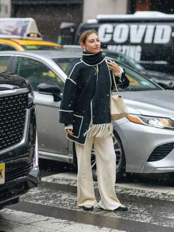 Стиль бохо снова появился на подиумах в зимнем сезоне 2023/24. Бахрома становится центром внимания, поэтому такие аксессуары, в особенности шарфы, возглавляют мировые тренды. Бахрома должна быть длинной и объемной — это придаст шарфу экстравагантности, а образу — индивидуальности. Носите аксессуар с пальто или шубой — они подчеркнут вашу утонченность. Однако с таким предметом гардероба стоит быть аккуратной: если переборщить, то выход из стильного превратится в безвкусный.