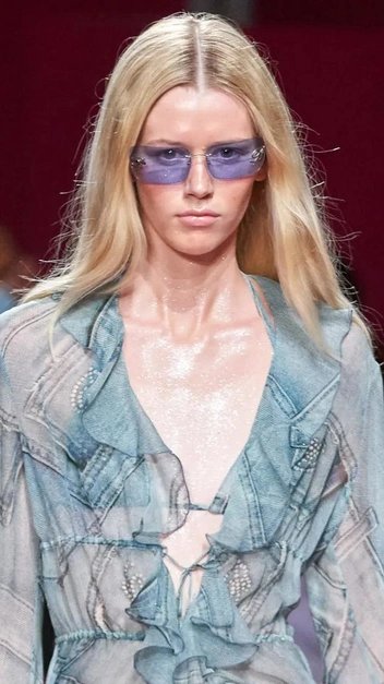 Яркие и легкие образы стоит дополнить солнцезащитными очками с цветными линзами. Такая модель, как, например, на показах Fendi и Blumarine, должна быть без оправы или в спортивном стиле. Аксессуар будет круто смотреться с романтичными блузами, вещами из денима или яркими платьями (читайте также: 7 самых романтичных платьев для свиданий — от шелковых комбинаций до смелых мини).
