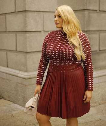 Предлагаем разрушить стереотип о том, что девушкам с пышными формами стоит скрывать свою фигуру под длинной и широкой одеждой. Мини-юбки можно и нужно носить, но подбирать к своим образам следует модель А-силуэта, которая плавно расширяется и не облегает бедра.