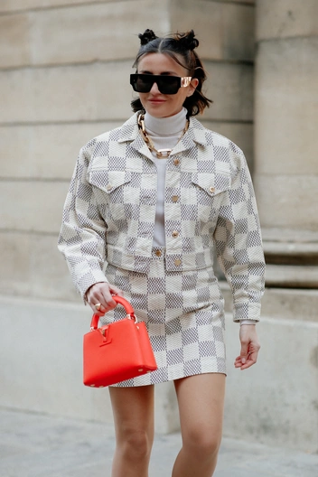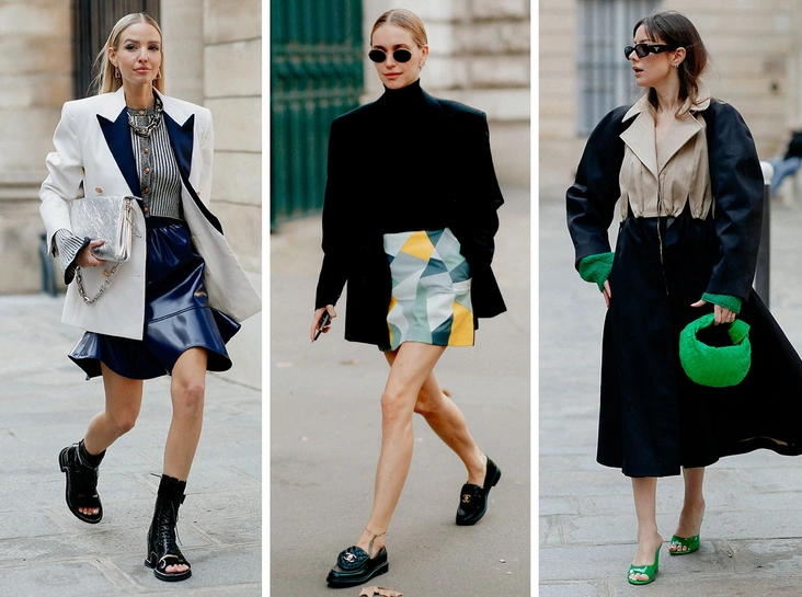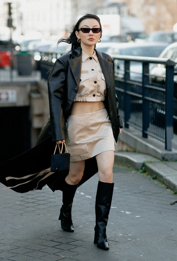 С кожаной юбкой получатся самые эффектные и модные образы на каждый день. Герои стритстайла комбинируют такие с монохромными свитерами, рубашками с принтом или объемными жакетами. Осенью-2022 актуальны модели длины миди и мини. В пару к такому предмету гардероба стоит подобрать ботильоны на небольшом каблуке или сапоги. Лучше остановить выбор на классической черной юбке, с которой получится создать множество стильных аутфитов, или модели бежевого, шоколадного или винного оттенков.