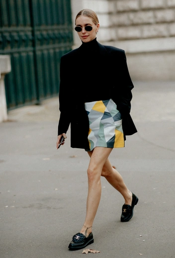 Подиумом и улицей в этом году заправляют дерзкие мини. В лучших традициях французских модниц носить такие стоит со спокойным верхом и сдержанной обувью. Сочетайте короткую шерстяную, джинсовую или кожаную юбку с водолазкой или джемпером, а также с ботильонами на небольшом устойчивом каблуке, лоферами или сапогами чуть выше колена. К короткой юбке также можно добавить плотные колготки или гольфы.