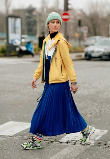 Самый комфортный и уютный тренд нового сезона — трикотажная юбка. Дизайнеры продолжают увлеченно работать с вязаными вещами, предлагая нашему вниманию новые и свежие идеи для луков на каждый день. Трикотажную юбку длины миди можно сочетать с кожаной курткой, шерстяным пальто или популярным сейчас бомбером. Из обуви подойдут лоферы, ботильоны и сапоги.