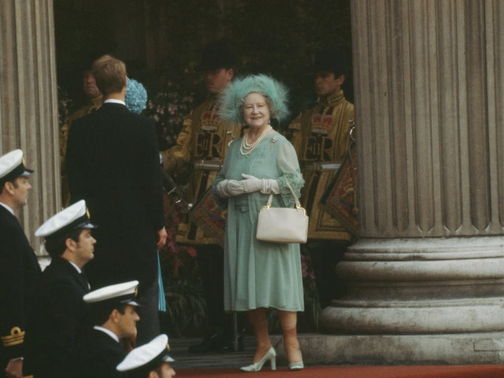 Елизавета тоже привлекла к себе внимание с помощью броского аксессуара на свадьбе Дианы и Чарльза. Королева-мать появилась в причудливой бирюзовой шляпе с перьями, которая издалека походила на зимний головной убор.