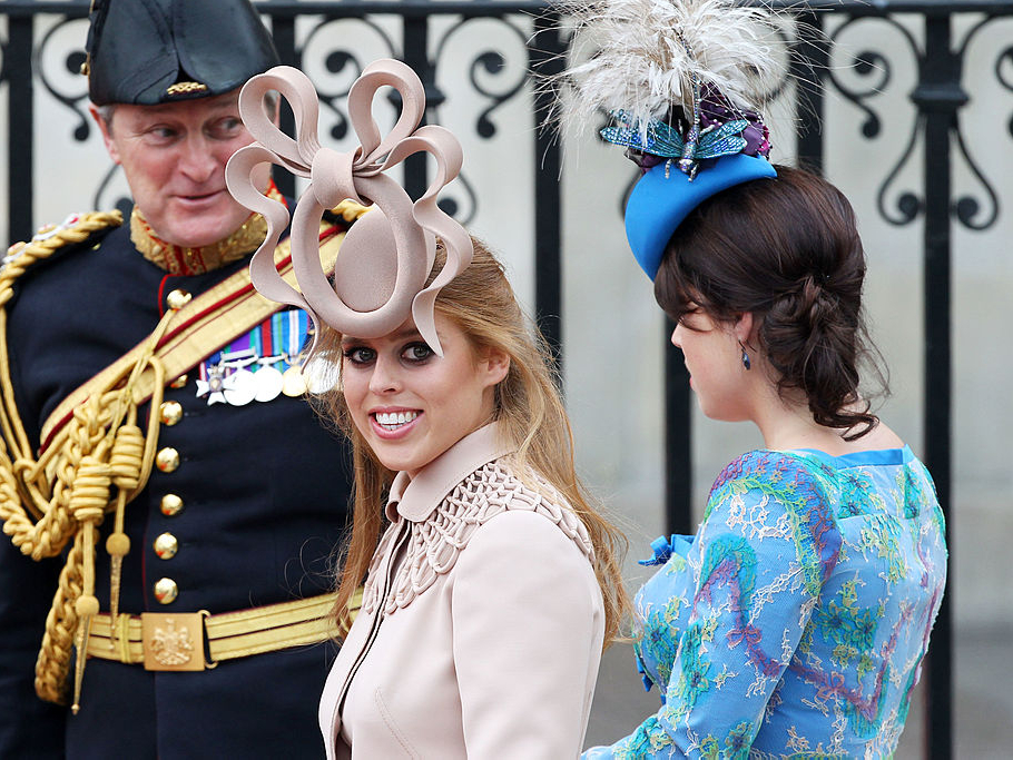 Говоря о причудливых шляпках королевской семьи, нельзя не вспомнить этот выход. Сестры Йоркские появились на свадьбе принца Уильяма и Кейт Миддлтон в чересчур фантазийных шляпах от известного дизайнера Филипа Трейси (читайте также: Безумный шляпник: самые невероятные головные уборы, созданные Филипом Трейси).