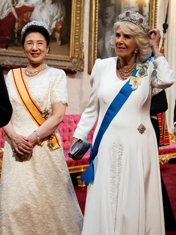 Тиара Мэйдзи — старейшая из известных диадем японской императорской семьи. Она украшена завитками с круглыми бриллиантами на концах и имеет специальную технику крепления, благодаря которой ее можно видоизменять под разные поводы. По предположениям, она была изготовлена в 1885 году ювелирным домом Chaumet и надевались всеми императрицами, занимавшими трон с тех пор и до сегодняшних дней (читайте также: Аквамарины и бриллианты: любимые тиары Софи Уэссекской).