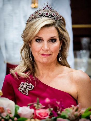 У Оранских есть и другая тиара с бриллиантами и рубинами. Она была изготовлена в 1889 году ювелирным домом Mellerio и подарена королеве Эмме королем Виллемом III на Рождество. Нынешняя королева неоднократно появлялась в этом фамильном украшении, в том числе на свадьбе шведского принца Карла Филиппа и его избранницы Софии.