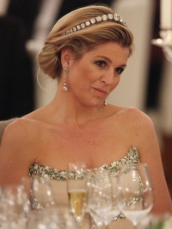 Бриллиантовый гребень, принадлежавший королеве Вильгельмине, сегодня выполняет функцию крошечной диадемы. Кронпринцесса дополнила им убранные наверх волосы на государственном банкете в Сингапуре в январе 2013 года.