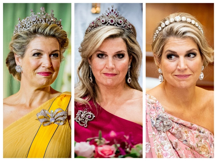 В первые года брака Максима часто появлялась в тиаре «Голландская звезда», однако спустя более чем десять лет украшению вернули его прежний вид. Впервые мир увидел тиару «Жемчужная пуговица» еще в 1960-х, однако венчающие ее жемчужные медальоны, принадлежавшие королеве Нидерландов Софи, датируются девятнадцатым веком.