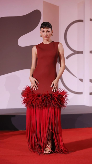 Еще одна водяная нимфа на красной ковровой дорожке Венецианского кинофестиваля — Стелла Максвелл, которая почти не появляется на публике, а если и появляется, то делает это эффектно. Для образа русалки топ-модель выбрала восточный бренд IKH Fashion: у него объемный подол, корсетный топ и длинный шарф, ставший в 2024 году трендом.