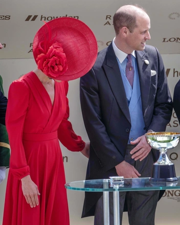 На скачках Кэтрин блеснула в ярко-красном наряде, дополнив платье от Alexander McQueen широкоугольной шляпой Philip Treacy — в мире моды современного модельера уже успели прозвать «Безумным Шляпником» за смелые дизайнерские решения. Шляпа также была украшена большим цветком в тон аксессуара.