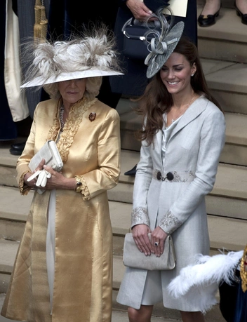 И вновь Philip Treacy оказался фаворитом в модном выборе Кейт. Желтая шляпа британского дизайнера вписалась в ансамбль с бледно-желтым платьем-пальто от такого же неизменного любимчика Уэльской, как Alexander McQueen.
