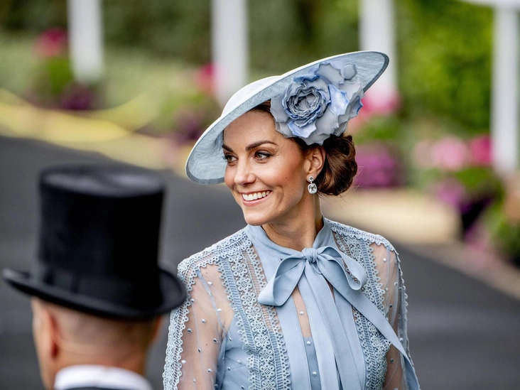Поклонников королевской семьи потрясло появление Кэтрин на скачках в светло-голубом платье Elie Saab с прозрачными узорчатыми рукавами. Шляпка от Philip Treacy в тон с одной крупной розой идеально подошла к платью принцессы.