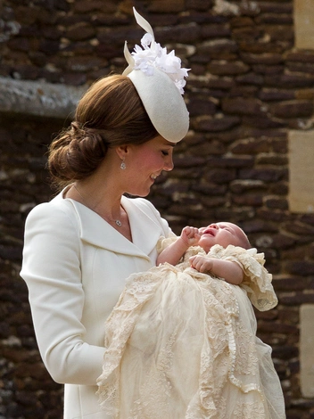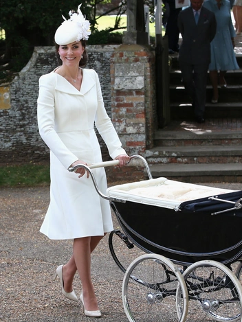 В день крещения своего первенца Кейт прибыла в часовню Сэнт-Джеймсского дворца в платье-пальто цвета слоновой кости того же модного дома, который выбрала для венчания с принцем Уильямом. Вещи Alexander McQueen продолжили составлять основу праздничного гардероба Кембриджской и в последующие года.