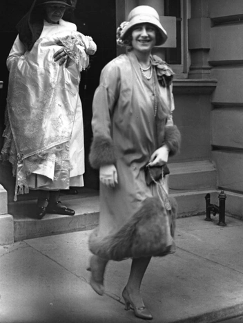 На момент, когда был сделан этот снимок, мама нынешнего монарха еще не была королевой матерью или королевой Елизаветой, а пребывала в статусе герцогини Йоркской. Она запечатлена по дороге на крещение их с мужем первой дочери. Будущая британская правительница родилась в 17 доме на Брутон-стрит, где жили родители ее матери. Сейчас там находится китайский ресторан. На герцогине было пальто с меховой оторочкой, белые перчатки, жемчуг, шляпа и туфли по моде 1920-х.