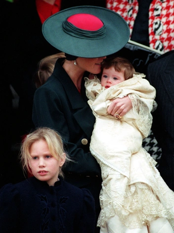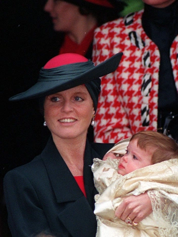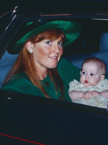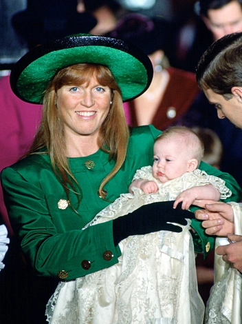 Герцогиня Йоркская была в зеленом костюме с золотыми пуговицами, черных перчатках и шляпке, сочетающей оба цвета, когда они с принцем Эндрю крестили их старшую дочь, принцессу Беатрис. Рыжеволосой Саре всегда шла эта гамма, и она демонстрирует похожие комплекты и по сей день.