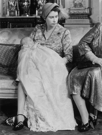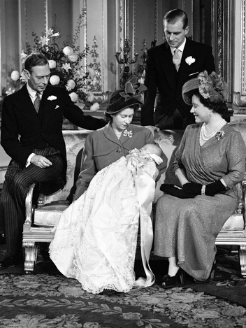 В свою очередь сама Елизавета (тогда еще пребывавшая в статусе наследной принцессы) в день крещения своего первенца была запечатлена уже на тщательно срежиссированном семейном снимке в Букингемском дворце. Молодая мать, которая держит на руках новорожденного принца Чарльза, одета в теплое пальто, соответствующее промозглой декабрьской погоде, и шляпу. Лацкан, как и всегда, украсила брошь. Помимо мамы и папы, рядом с мальчиком сидят его бабушка и дедушка — король Георг и королева Елизавета.