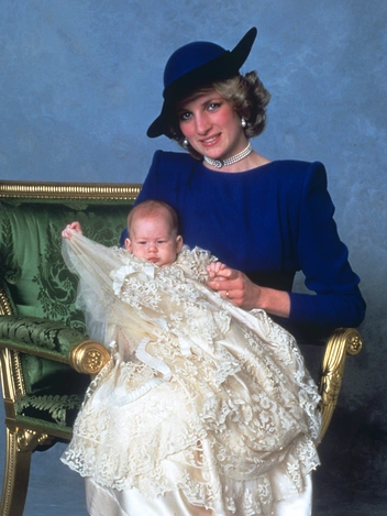 Через два года Ди прибыла на крещение своего младшего сына в комплекте из платья и шляпки насыщенного цвета электрик с черными деталями. Его дополнили жемчужное колье и серьги, которые впоследствии герцогиня Кембриджская наденет на крестины своего племянника Арчи.