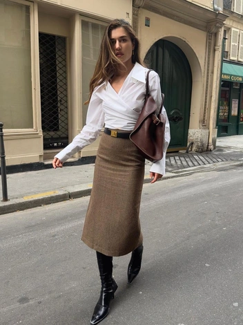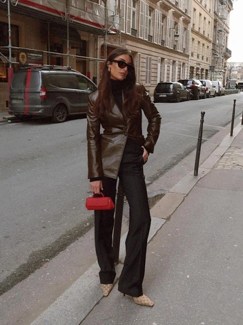 Однако самым модным решением будет в 2024 году — создать коричневый тотал-лук, объединив все вещи либо одним оттенком, либо разными. Например, можно выбрать темное шоколадное пальто и надеть под него более теплый и светлый свитер в сочетании с кофейными кожаными брюками и сапогами. Некоторые модницы экспериментируют с винтажным стилем и сочетают в луке разные оттенки кожи (читайте также: Почему итальянки выглядят так дорого: 6 секретов роскошного гардероба, которые нужно знать всем).