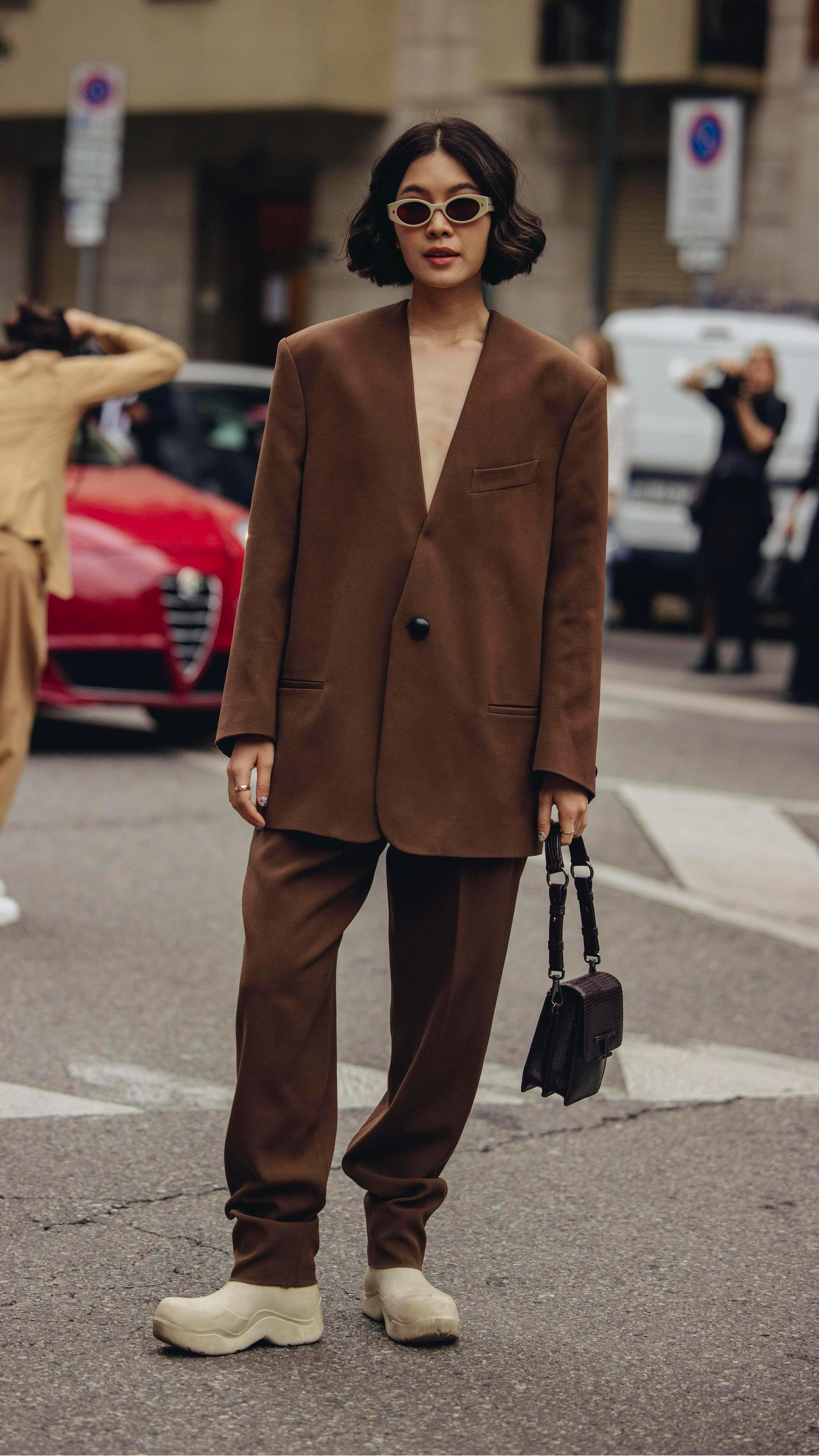 Еще один способ включить коричневый цвет в свой гардероб и ощутить на себе его силу — добавлять в образы лаконичные стильные детали. Пусть это будет винтажные очки с цветными стеклами, безупречный кожаный ремень или шнурок, повязанный поверх пальто или пиджака, остроносые туфли или сапоги с квадратным мысом, а также ободок, словно вы только вернулись машиной времени из 90-х.