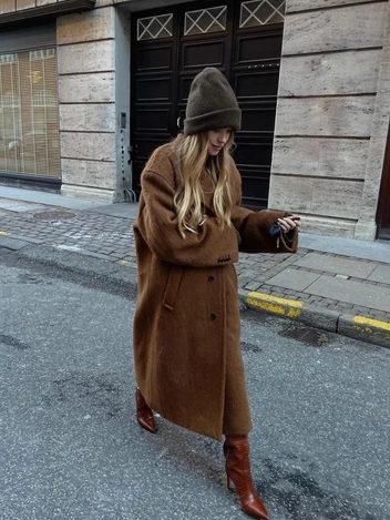 Начать любовь к коричневому стоит по-крупному, если вы всерьез намерены покорить свое сердце. Самые модные девушки выбирают верхнюю одежду в шоколадных и кофейных оттенках, надевая оверсайз пальто в длине макси, дубленки-авиаторы, объемные пуховики, шубы и плащи.