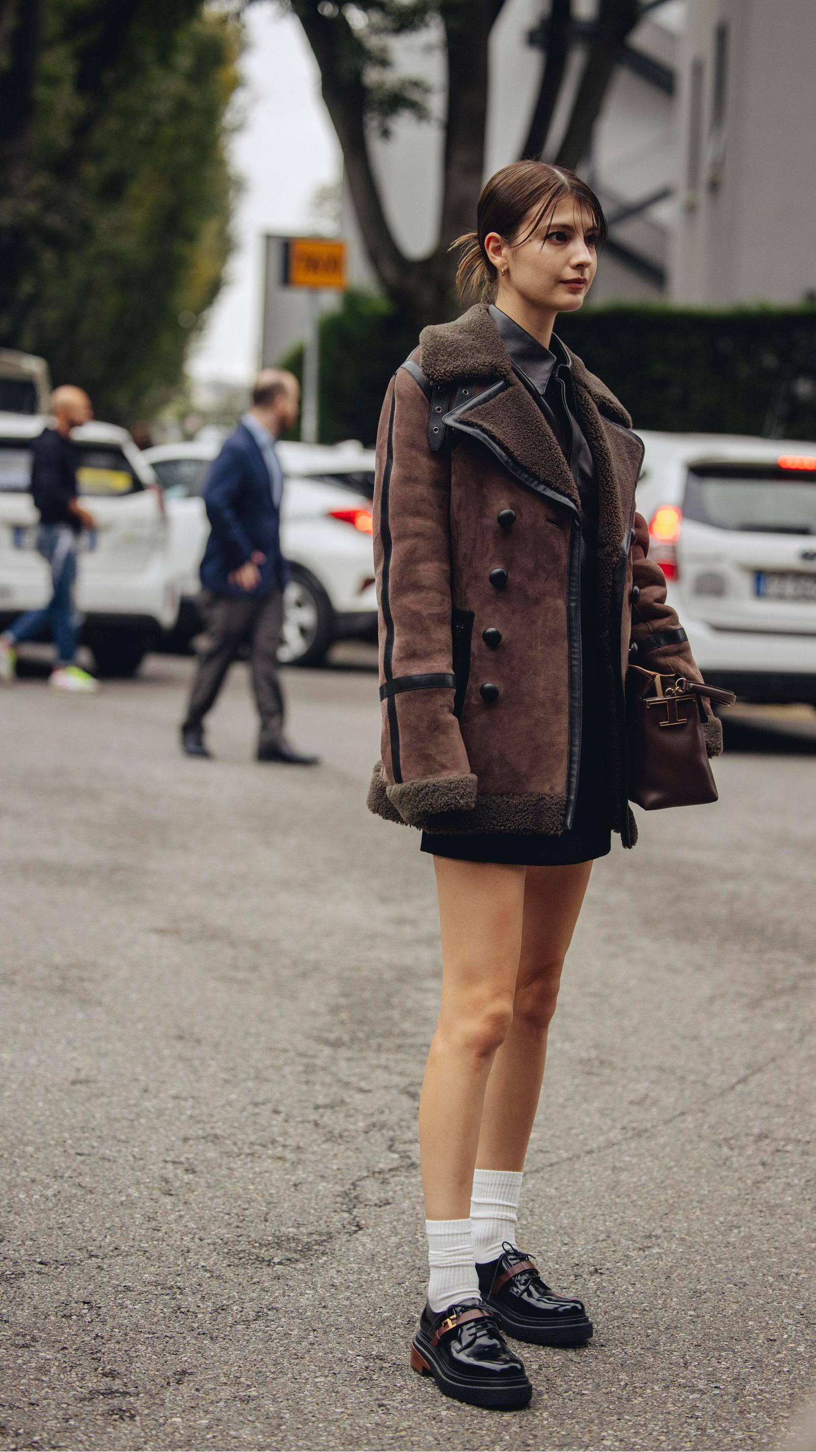 Если вы не готовы переодеться в коричневый цвет, тогда начать повторять главный тренд года стоит с аксессуара — сумки. Но и здесь не обойтись лишь мелкими деталями: если и выбирать сумку, то объемную — в размере XL. Дизайнеры за последние несколько лет невольно заставили нас полюбить крупные кожаные и замшевые изделия, куда вместится и ноутбук, и пленочная камера. Однако это не значит, что маленькие сумки стали модным табу — вовсе нет, только выбирать их стоит в интересной форме или с необычной фактурой (читайте также: Самые модные сумки весны и лета 2024).