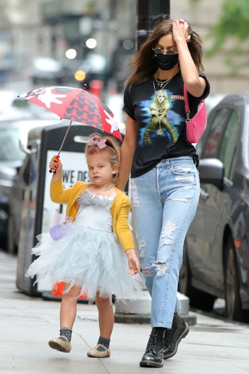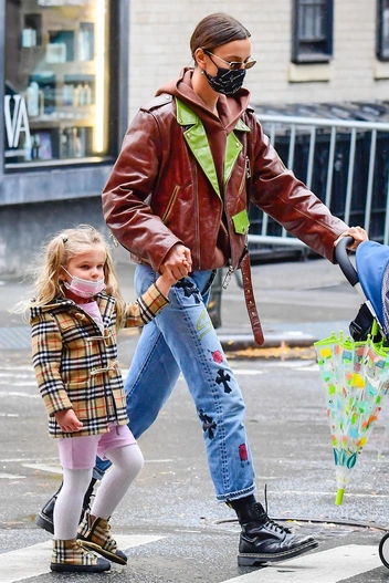 Недавно в интервью Ирина Шейк рассказала, что Лея любит защитные маски, поскольку не хочет столкнуться с «маленькими микробами», захватившими город. Так что даже эта маленькая королева стрит-стайла знает, что безопасность может быть стильной.