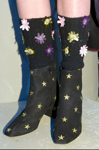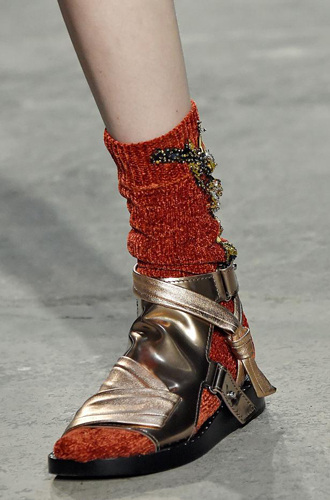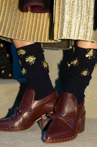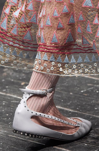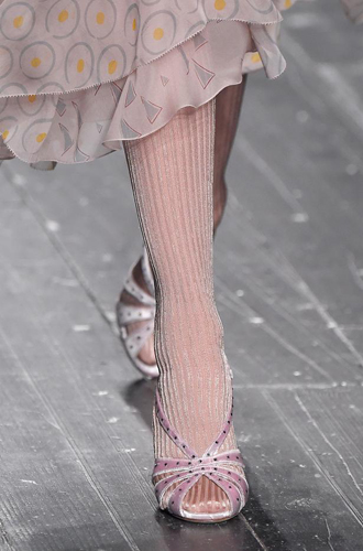 Анализируя последние модные показы, становится очевидно: в грядущем сезоне дизайнеры предлагают нам вспомнить детство и достать из пыльных ящиков носки и чулки, которые когда-то давно заботливо связала для нас бабушка. Так что в новом сезоне, как только почувствуете сквозняк под ногами, не спешите переобуваться из открытых босоножек в теплые ботильоны. Будьте оригинальной: просто наденьте под вашу привычную летнюю обувь пару бабушкиных носков и вперед гулять!
