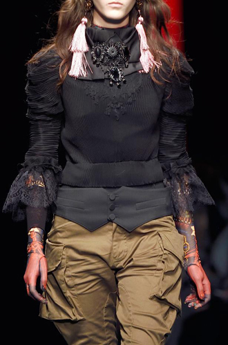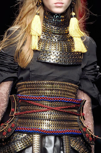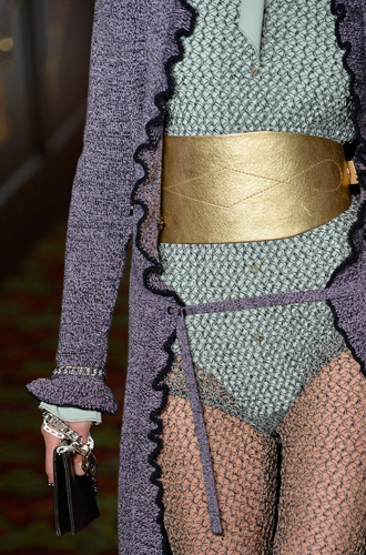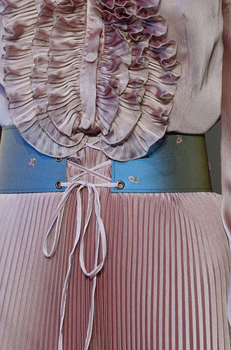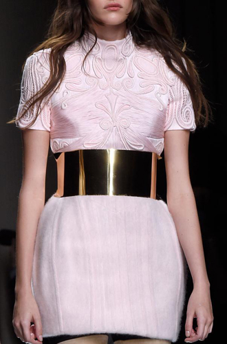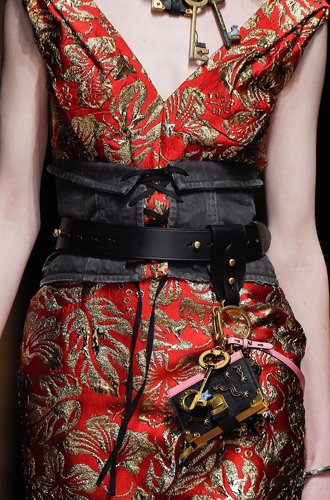 Совершенно сногсшибательные ремни-корсеты из красной и золотой кожи продемонстрировали Louis Vuitton и Loewe. Prada играет эклектикой и сочетает тканевые и кожаные корсеты с обыкновенными ремнями, декорированными брелоками. Список трендсеттеров продолжают Anna Sui, Fendi, Salvatore Ferragamo, Antonio Marras, Bibhu Mohapatra и Luisa Beccaria.