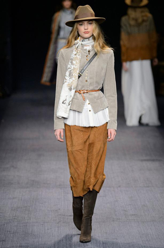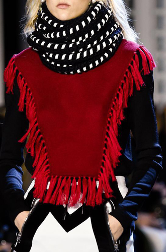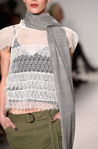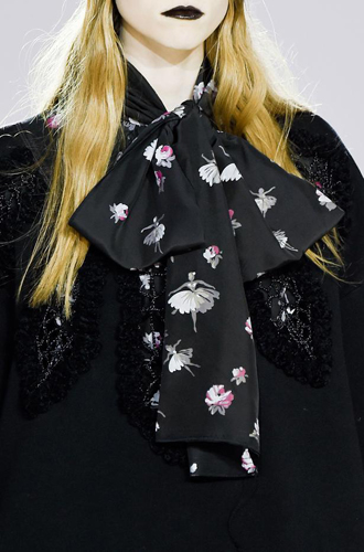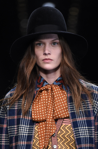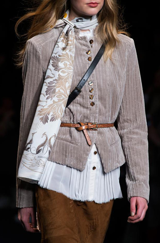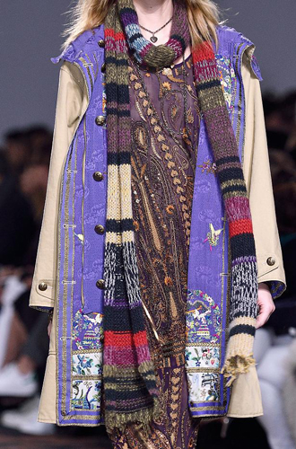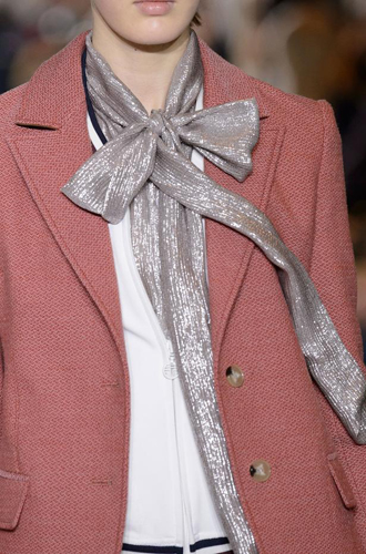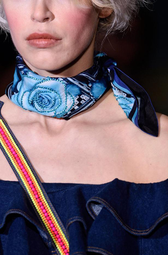 Одинаково частое появление на подиумах длинных шарфов и коротких шейных платков породили собой настоящее модное противостояние романтики и стиля casual. Etro демонстрирует довольно длинные платки, свободно завязанные на один узел, а Marissa Webb и Lela Rose добавляют в привычные casual варианты нотку элегантности. Но подлинное торжество романтики и женственности представили Chloe и Manish Arora, выпустившие своих моделей в небольших шелковых шейных платочках.