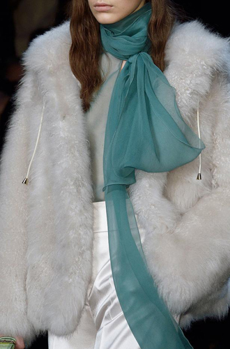 Например, можно носить роскошный шарф в руке, как то предлагают Dries Van Noten, или же непринужденно накинуть на плечи, подражая Alberta Ferretti и Diane von Furstenberg. Или, когда наступают особо лютые морозы, можно крепко укутаться в меховой палантин, как к тому призывают Vetements и Luisa Beccaria.