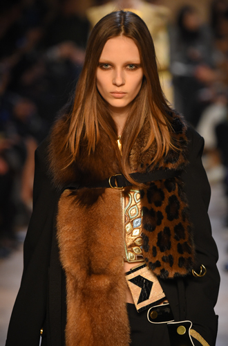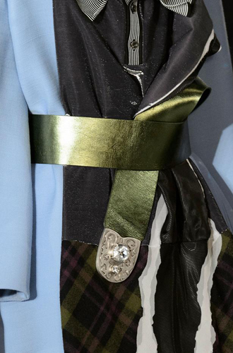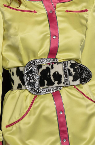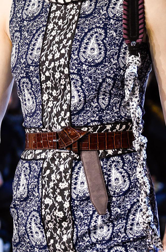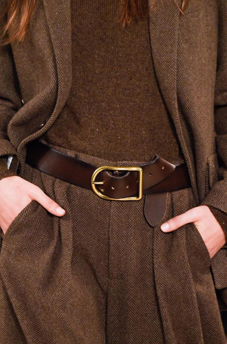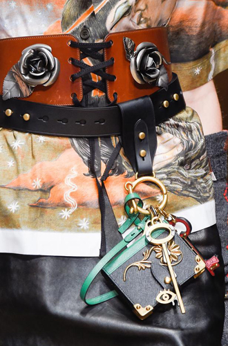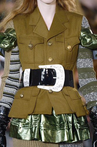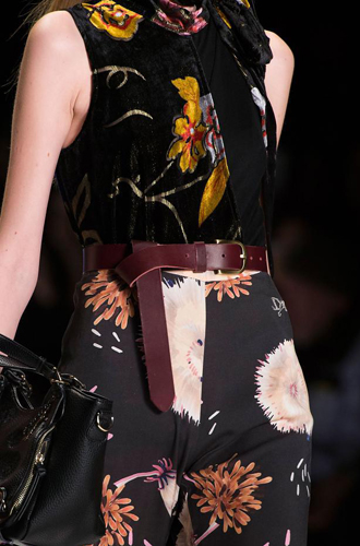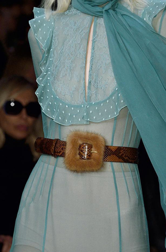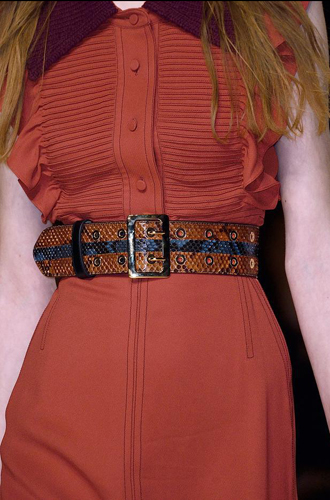 Burberry демонстрирует великолепные ремни из цветной кожи рептилий, перевязанных поверх женственных платьев и теплых жакетов. Roberto Cavalli экспериментирует с колорблокингом и сочетает ремни в стиле western с изделиями из денима, а Jeremy Scott и Antonio Marras предлагают гигантские ремни с леопардовым принтом.