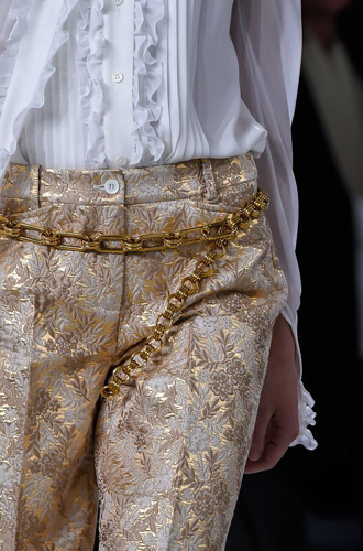 Конечно же, стоит несколько раз подумать, прежде чем добавлять такой яркий аксессуар к своему деловому костюму, в котором вы ходите в офис. Но и бояться позолоченных поясов не надо: если вы чувствуете, что ваш look сегодня ужасно скучен, смело опоясывайте себя золотом! Не знаете, как? Вдохновляйтесь примерами от Balmain, Saint Laurent и Michael Kors.