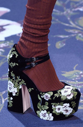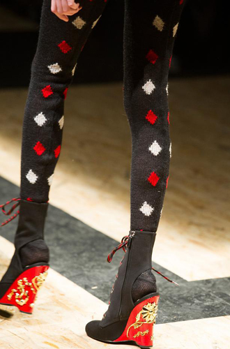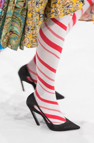 Balenciaga украшает колготы принтом в виде леденцов, а Valentino вдохновляется балетом и выпускает своих моделей в нежных розовых чулках. Модели в классическом черном цвете, но не лишенные ярких декоративных элементов, появляются также на показах Bibhu Mohapatra, Moschino, Alexander Wang и Alexis Mabille.