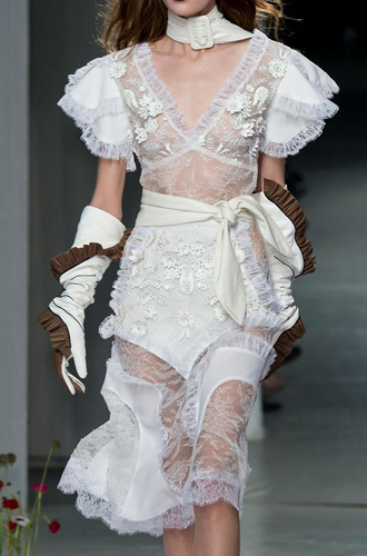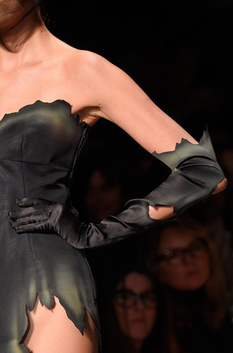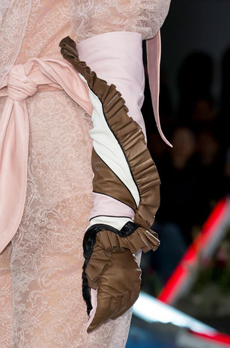 Rodarte декорирует длинные белые перчатки коричневыми рюшами, а Delpozo вырастил на бордовых кожаных перчатках цветочный сад. Loewe же разрезал замшевые перчатки и задрапировал их так, что мы теряемся в догадках, на что это похоже. Осмелитесь выйти в таких перчатках на улицу?